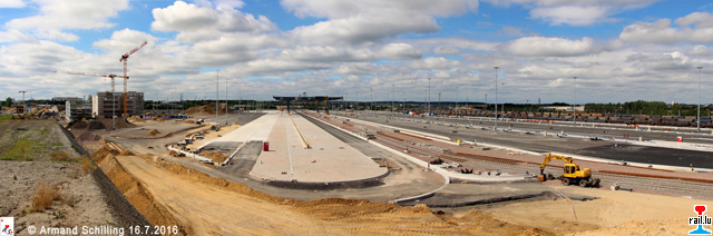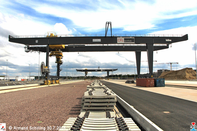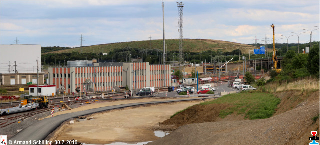 Der zukünftige CFL Multimodal Zentral Kontrollposten. Im Hintergrund die beiden 2015 errichteten 400 to CFL Multimodal Laufkräne (Photo: 16.7.2016 Armand Schilling)