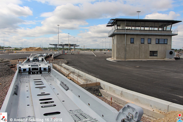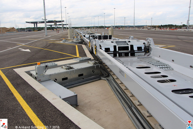 Eine der beiden Be- und Entladestrassen (sogenannte Rail Motorways) (Photo: 30.7.2016 Armand Schilling)