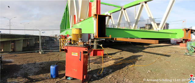 Verschiebung-Brückenteil 1 - mittels Riesenkran (Photo: 15.1.2017 Armand Schilling)