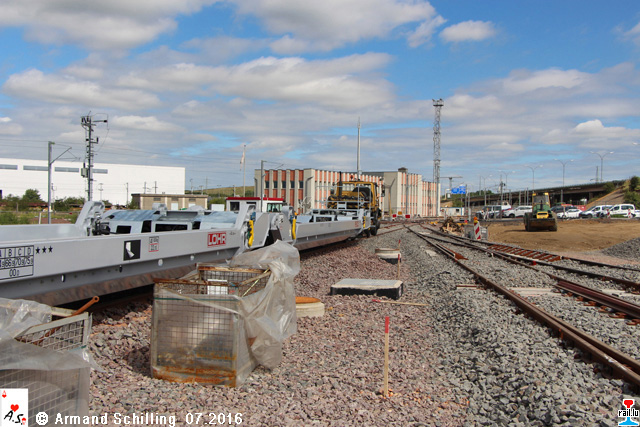 CFL Multimodal-Baustelle aus Richtung Du - links CFL Zug Bt-Du (Photo: 16.7.2016 Armand Schilling)