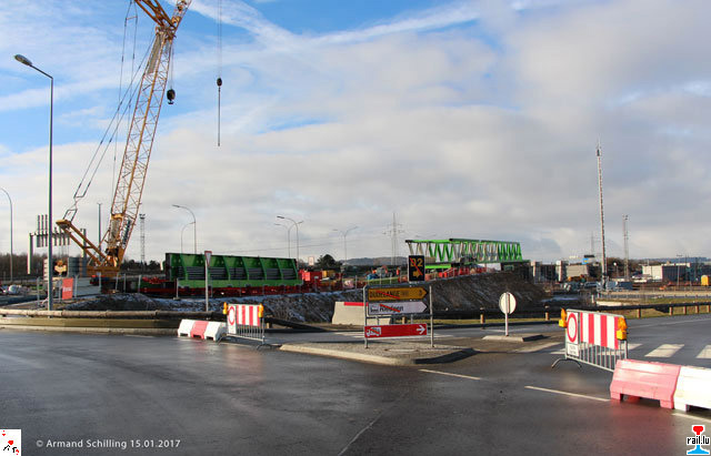 Den 1. Brëckendeel gouf an der Nuecht vum 14/15.1.2017 a Richtung EUROHUB SÜD verrëckelt, iwwert de Beeteburger Triage Unique an d’Stroos vun Helleng-Bt op Dideleng: