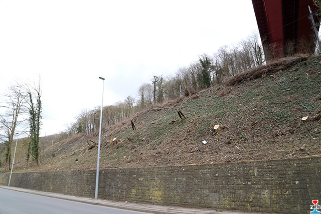 Kirchberg, terrain déboisé entre le futur arrêt   CFL Kirchberg - Pfaffenthal et la rue Saint-Mathieu à Pfaffenthal; à droite le Pont rouge     (Photos: 5.3.2015 jmo)