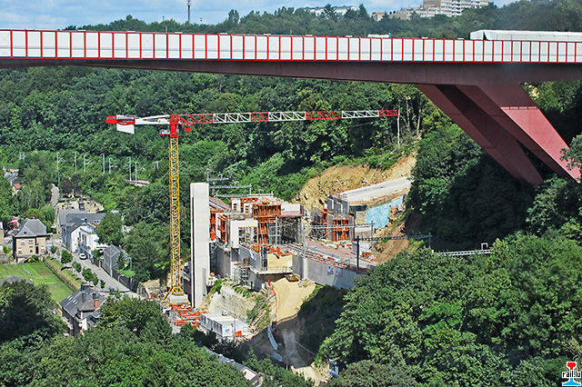 Die Baustelle der Kirchberger Standseilbahn aufgenommen von der   Aussichtsplattform des neuen Pfaffenthaler Aufzugs her (Photo:   6.8.2016 Francis Wagner)