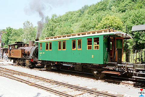 Runs on Sundays and bank holidays from May 1st to the end of September, except June 23rd (National holiday in Luxembourg) Circule tous les dimanches et jours fériés du 1er mai jusque fin septembre, excepté le 23 juin (fête nationale luxembourgeoise) Fährt sonntags und an Feiertagen vom 1. Mai bis Ende September, ausser dem 23.Juni (luxemburgischer Nationalfeiertag) Site officiel: www.train1900.lu |