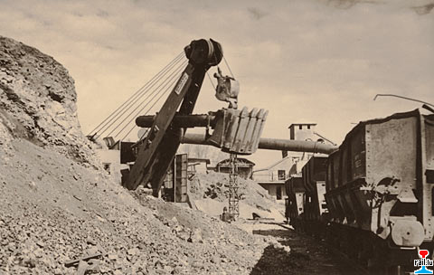 Exploitation du laitier de Terre Rouge, vers 1950 (Photo: Cloos)