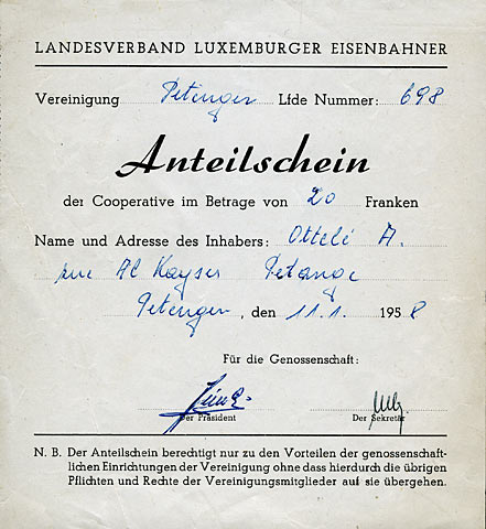 Petingen - Anteilschein der Cooperative (Collection: jmo)