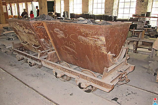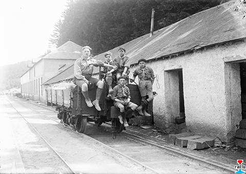 de 600 mm; les wagonnets étaient poussés par des hommes, tirés