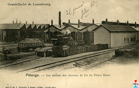 Pétange - Les ateliers des chemins de fer du Prince Henri vers 1903 (Carte