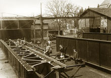 Echafaudage pour la réparation du pont ferroviaire dit "Bisserbruck" Bewegliches Reparaturgerüst der Eisenbahnbrücke "Bisserbrück" |