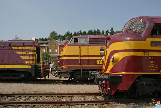 Exposition à la gare d'Ettelbruck lors des Festivités des 100 ans de la Ville d'Ettelbruck: locomotives diesel ex-CFL1603, ex-CFL1602, CFL-Cargo 804, CFL-Cargo 1802, CFL-Cargo 1505, ex-CFL 1604 (Photos: