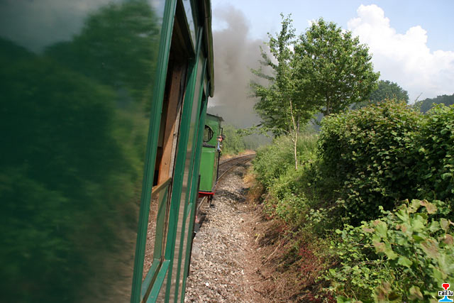 Der Sonderzug mit den Dampfloks AMTF ANNA N°9 und AMTF T3 auf der Attertstrecke zwischen Colmar-Usines und Bissen (Photo: