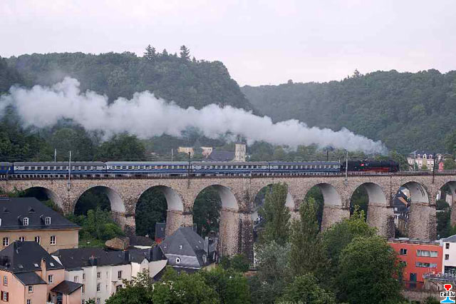 Dampflok 01 118 bei der Hinreise auf dem Viadukt Pulvermühle Richtung Bahnhof Luxemburg (Photos: 10.6.2007 Carlo Stemper)
