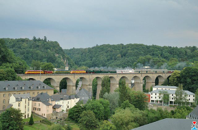 Sonderzug mit Eichholz - NOHAB Diesellok bei der Rückreise auf dem Viadukt Pfaffenthal der Nordstrecke (Photo: 10.6.2007 Carlo Stemper)