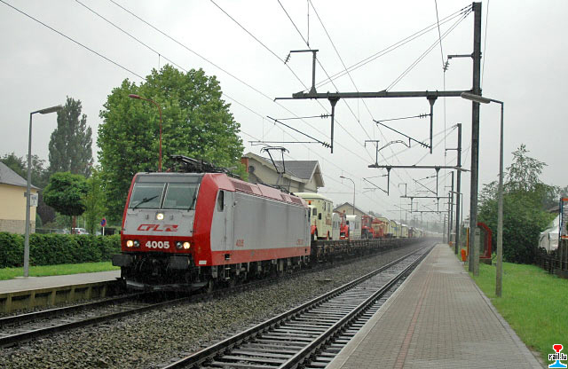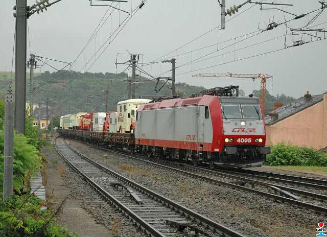 CFL 4005 avec le train du cirque Roncalli de Munich, lors de son entrée en gare de Wasserbillig (Photo: 25.6.2007 Mike Wohl)
