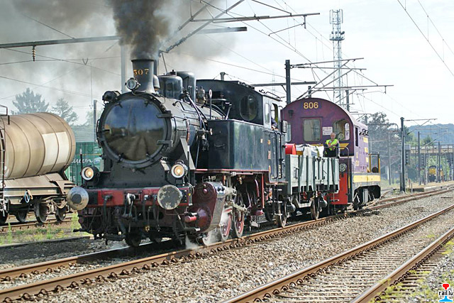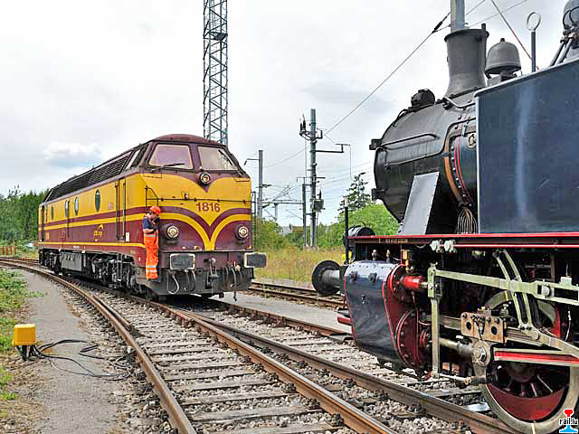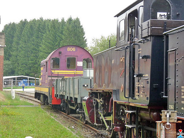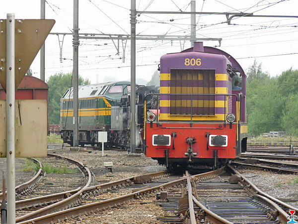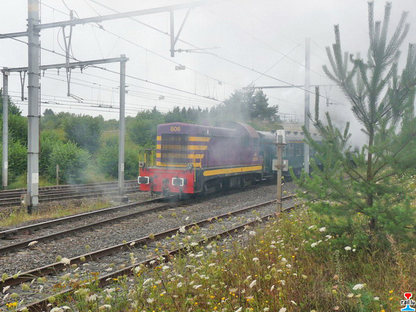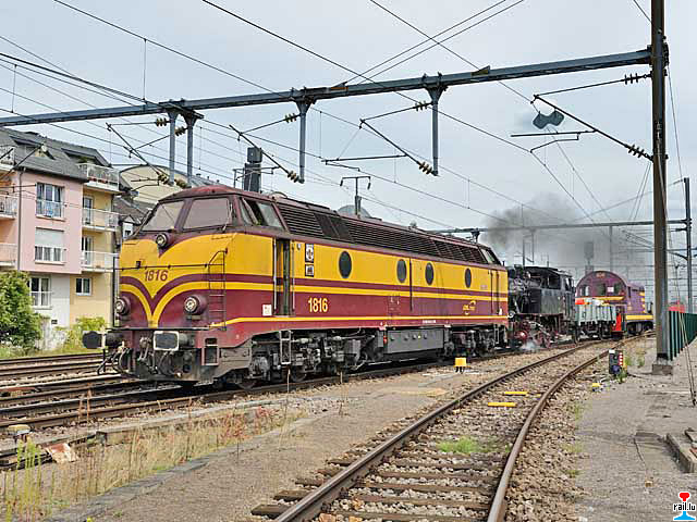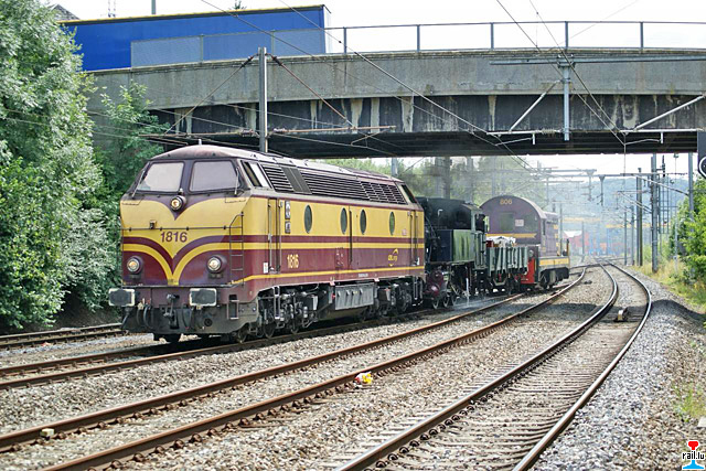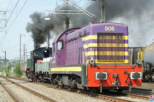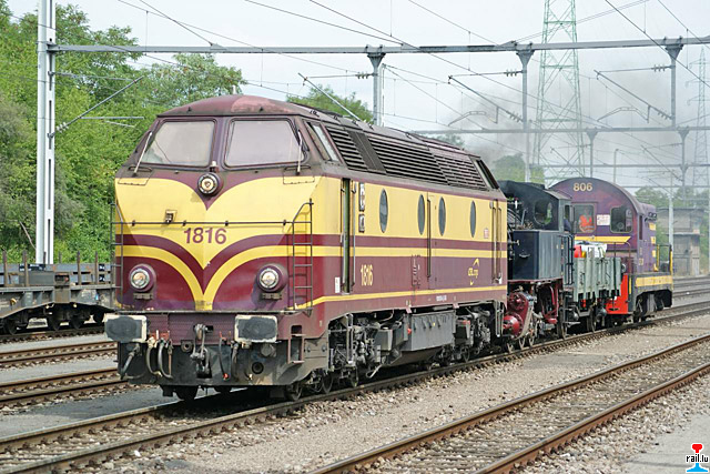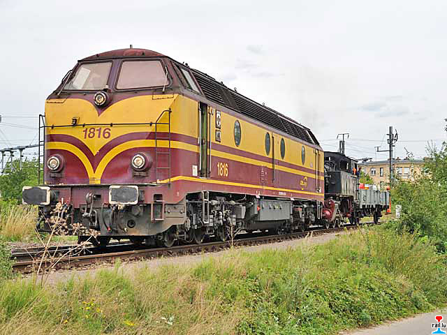 Transfert de la locomotive à vapeur 507 et de la locomotive diesel 806, avec la CFL cargo 1816 entre Rodange et Athus (Film: 10.8.2010 jmo)