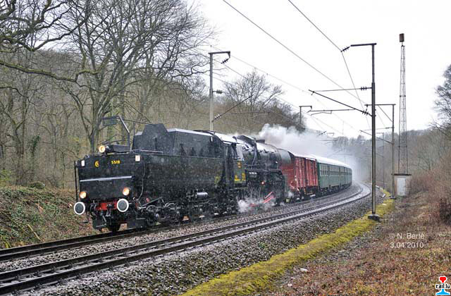 Die erste Fahrt der CFL- Dampflok 5519 nach Trier zum Dampfspektakel 2010 am 3.04.2010
