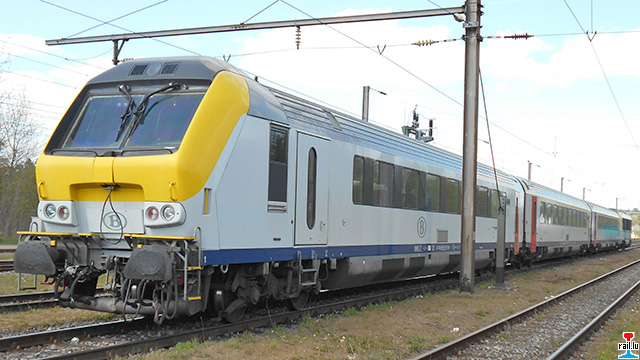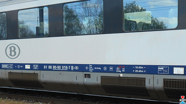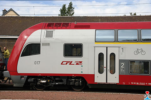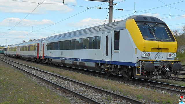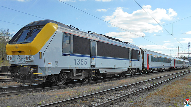 Gëschter Metten stung zu Athus an der Gare d'SNCB 1355 mat enger Rame réversible ofgestallt (fir Testfahrten um CFL-Réseau?). Des Rame bestung aus enger Voiture pilote 2. classe SNCB 61 88 80-90 018-7 B an 2 Voituren 1. classe. (Photos: 23.4.2017 Dan Antony)