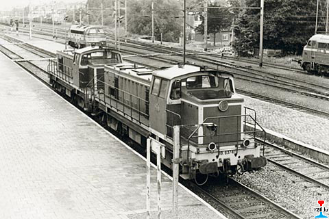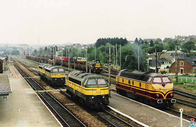 Locomotives SNCB 5312 et 5318 et CFL 1812 à Athus (Photo: 1994 Schlim Marcel)