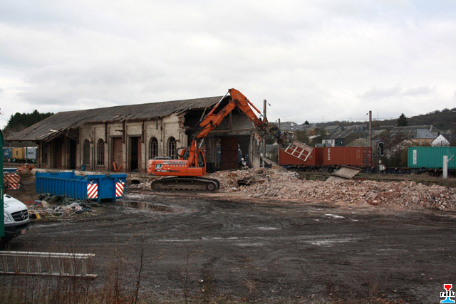 Gare Athus: les toilettes n'existent plus et la halle à marchandises est en cours de démolition (Photo: 29.11.2012 Christophe Bourguignon)