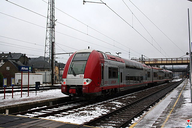 Depuis l'arrêt du trafic voyageurs SNCB en 1988 sur la ligne 167 Athus-Arlon, Athus n'est actuellemement accessible en train que par la ligne Rodange-Athus, desservie par les CFL.