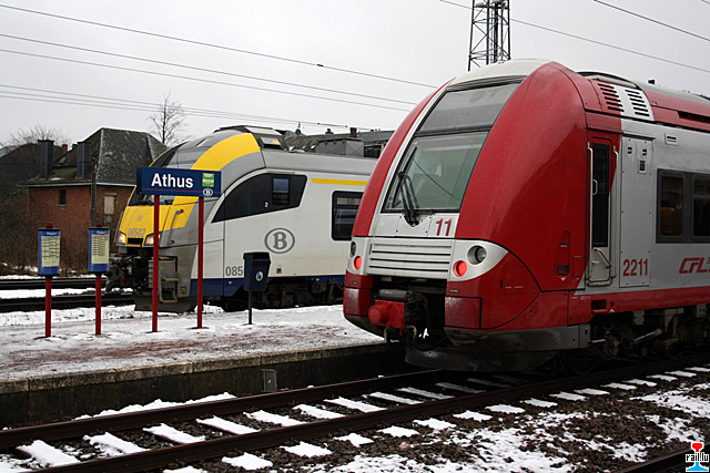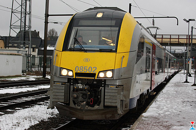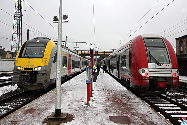 Ce matin, mise en service des rames Desiro entre Virton-Athus-Arlon et retour sans passer par Rodange (Elles n'ont pas encore l'homologation pour y aller). 8502 venant de Virton, arrêt à Athus 8h58 (Photos: 10.12.2012 Christophe Bourguignon)