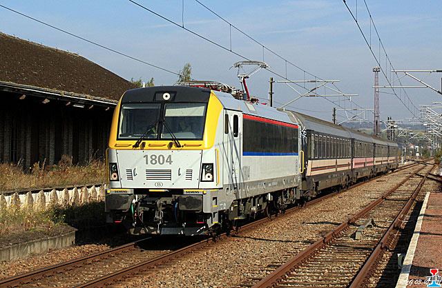Parcours de rodage de la SNCB 1804 avec voitures - couchettes à Athus (Photo: 3.10.2011 Yves Gillander)