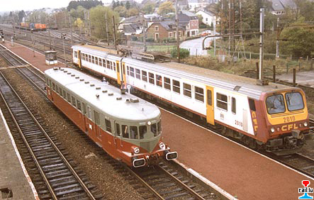 Gare d'Athus avec autorail et remorque CFL Uerdingen (Collection: jmo)