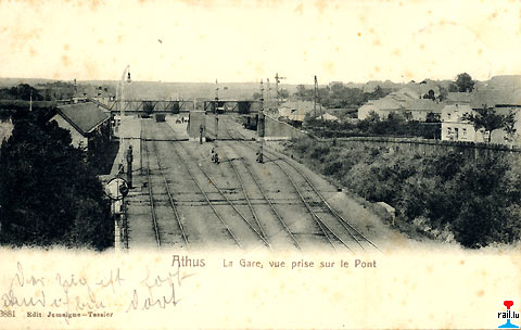 Athus - La Gare, vue prise sur le Pont (date de la poste:1903) (Carte