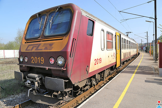 L'automotrice CFL 2019 en gare d'Audun-le-Tiche (FR).
