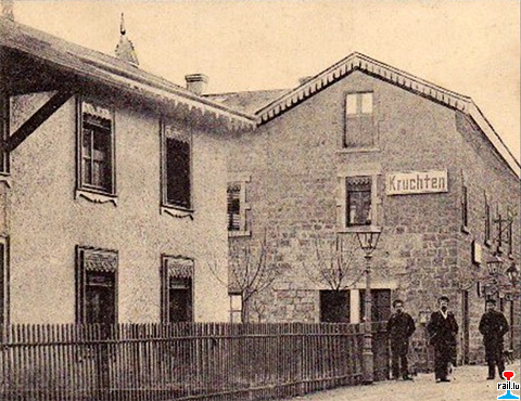 Links Buffet de la gare Mlle Weber - rechts Bahnhof Kruchten (Extrait de la carte