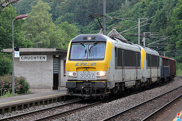 Train vide 48870 Hagondange - Visé avec locomotives CFL 3007 et CFL 3009 au passage à Cruchten. (Photo: