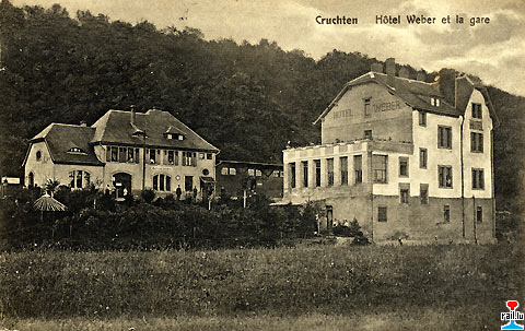 Gare Cruchten et l'Hôtel Weber vers 1922 (Carte