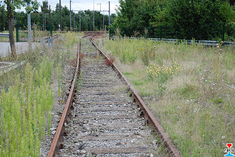 Güterschapp Gare Dummeldeng. Haut ass do en Autoparking - Op der 2. Foto, An- am Ausfahrt. (Photos: Juni 2008 Marc Wirtor)