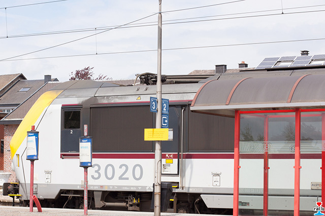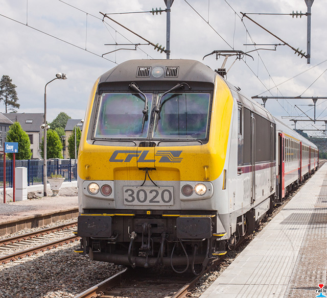 Gouvy, 19.07.2019: l'IC 109 Luxembourg-Gouvy est arrivé voie 3 (rame   SNCB I10, loc. CFL 3014); sur voie 2 attend IC 12109 Gouvy-Liège G.   (SNCB Desiro 08523) / photo: Mercatoris Nico