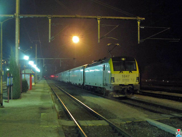 Après avoir assuré l'IC O 477 Bruxelles Midi-Gouvy, la SNCB 1847 a   manoeuvré la rame de 12 voitures SNCB I11 vers le faisceau, où elle   passera le weekend.