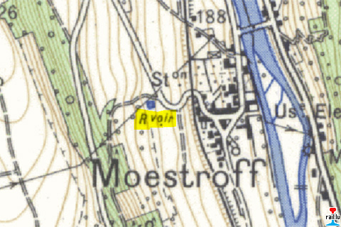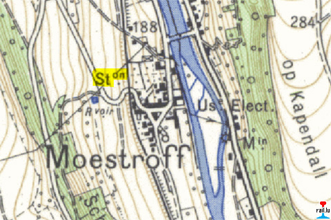 Station de Moestroff © Origine Administration du Cadastre et de la Topographie Luxembourg (ACT) - Extrait de la carte topographique à l'échelle 1: 25.000 édition 1954 - Autorisation de publication du 20.10.2010.»