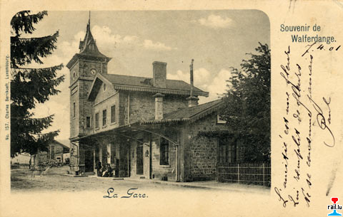 1892: Walferdingen. Das hiesige Stationsgebäude soll verschönert resp. vergrößert werden, ein neuer Wartesaal soll beigebaut werden, die Dienstwohnung vergrößert; auf der Vorderseite zur Straße wird wie auf derjenigen der Gleise ein Glasdach angebracht und ein Treppenturm soll dem Bahnhof ein Villa artiges Aussehen geben.(OMZ: 20.5.1892)