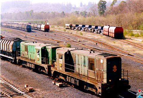 BB Alsthom 4 et 10 en double traction manoeuvrant une rame de wagons de