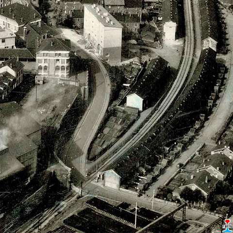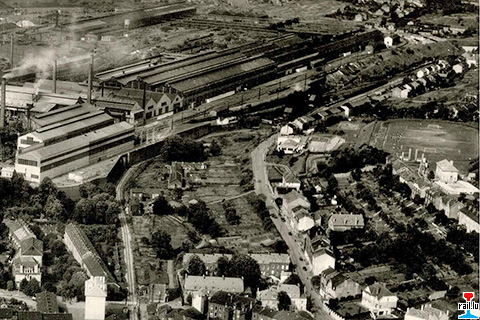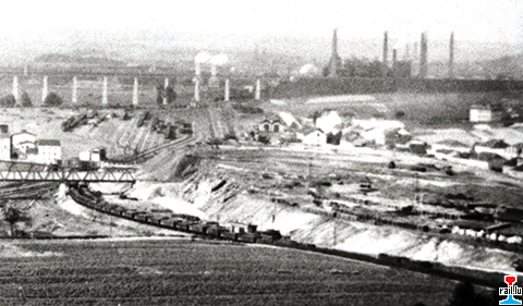 Russange   à l'avant-plan la ligne vers Villerupt (vers la gauche en bas) (Collection: Marcel Schlim)
