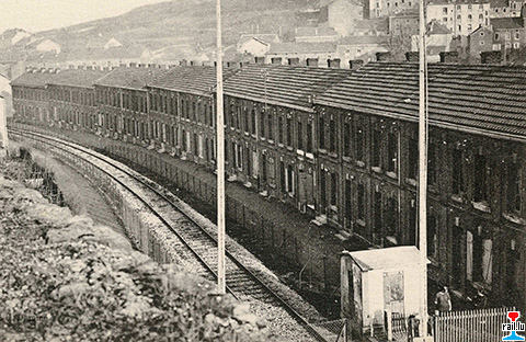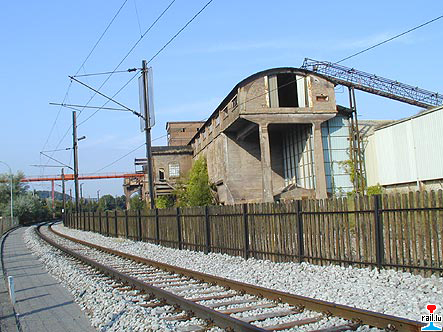 Ligne Esch/Alzette - Audun-le-Tiche à Esch-Barbourg,  à l'arrière-fond l'ancien poste de l'usine Terre Rouge (Photo: