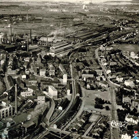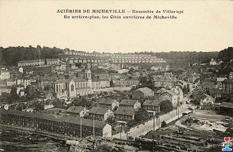 Villerupt - En arrière-plan, les Cités ouvrières de Micheville (Carte postale: J. Credazzi, éditeur; Collection: jmo)
