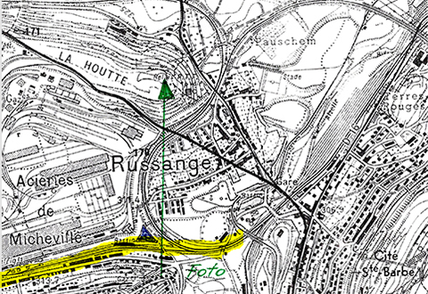 Rüssingen - Russange: A l'avant-plan les voies sortant de la gare d'Audun-le-Tiche (Collection: jmo)