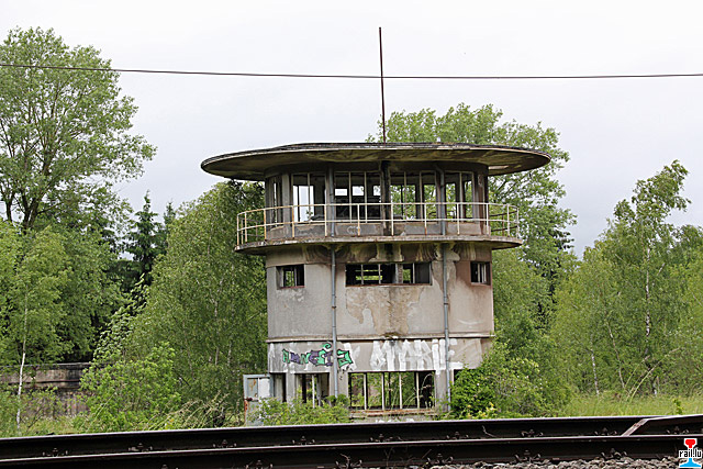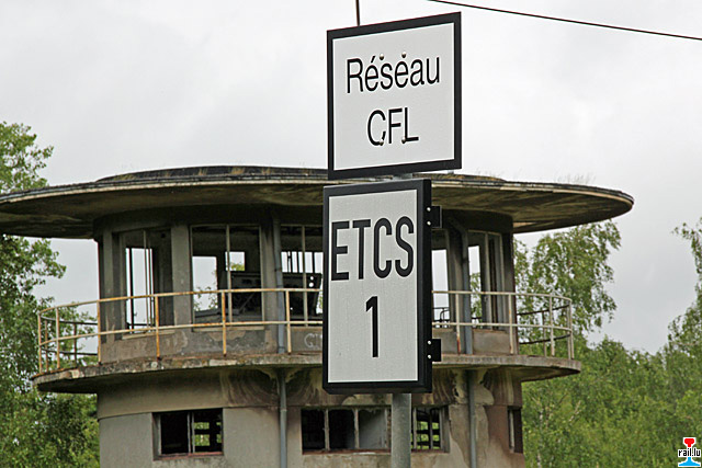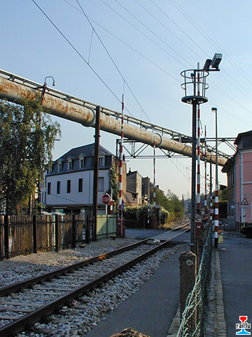 Ligne Esch/Alzette - Audun-le-Tiche à Esch-Barbourg, début de ETCS 1 et à l'arrière-fond l'ancien poste de l'usine Terre Rouge (Photo: