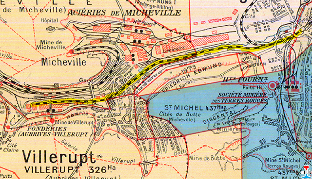 Audun-le-Tiche - voies direction: Cabuccières - Dépôts de locomotives - Villerupt - Rédange - Fontoy (Plan 1.10.1924)