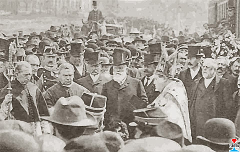 Cérémonie pendant l'inauguration - Inauguration du chemin de fer Luxembourg - Echternach le 19.4.1904 (Carte postale: Charles Bernhoeft 350)