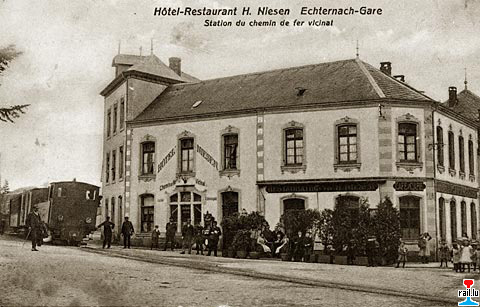 Hôtel-Restaurant H. Niesen Echternach-Gare Station du chemin de fer vicinal (Carte postale J.M.