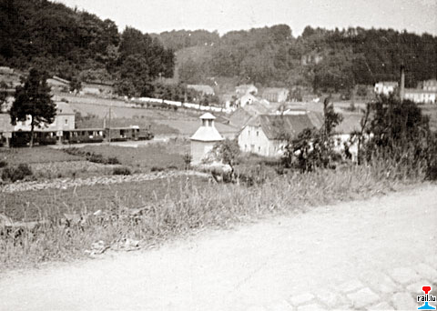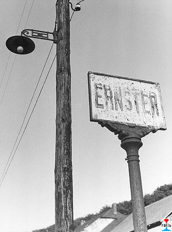 Panneau à l'ancienne gare de Ernster (Photo: 16.9.1955 Pol Aschman;