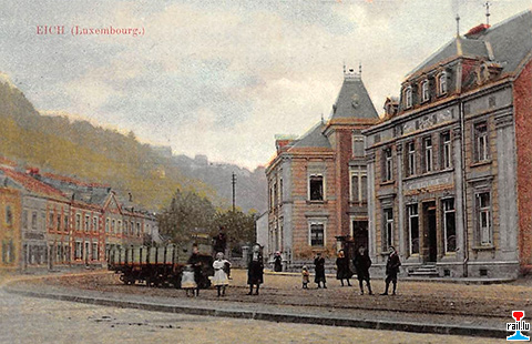rue Auguste Laval, Eich - Luxembourg - à la droite les voies du vicinal Charly (Carte
