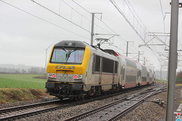 CFL Steierwon 008 mat der CFL 3008 zu Autelbas vu contre-voie op normalt Gleis Richtung Klengbetten.(Photos: 12.1. 2015 Dan Antony)