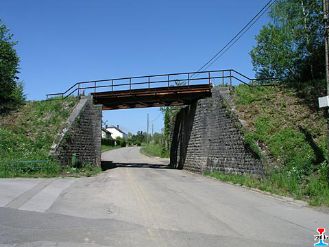 À partir du viaduc, le chemin s’élargit très fort et mène assez vite au parking situé sur l’emplacement de l’ancienne gare d’Herbeumont.